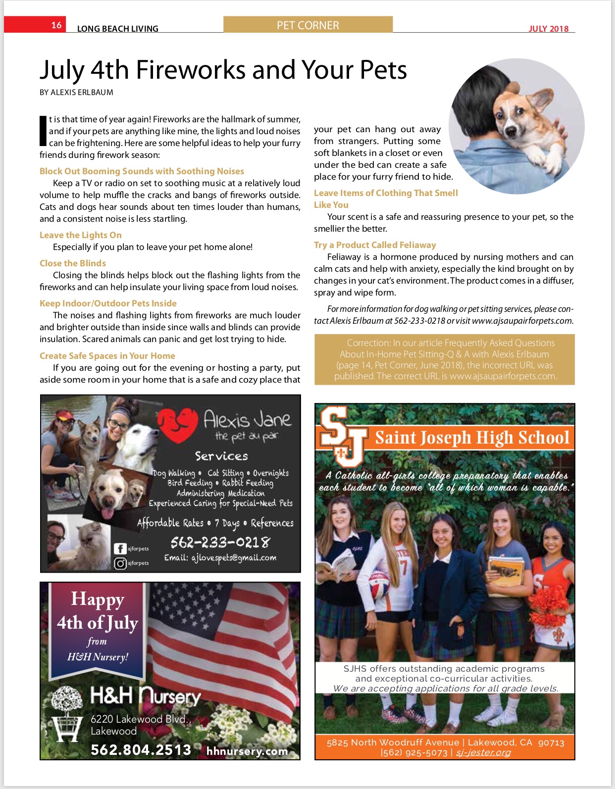 Happy Holidays from AJ’s Au Pair for Pets! I hope you and all of your furry friends have a wonderful holiday and I look forward to providing you with all of your pet sitting, walking, feeding, and pet related information needs in 2019! Check out the December issue of Long Beach Living available now!